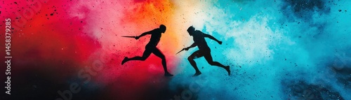 © Aurara, Naklejka premium Dynamic silhouettes of athletes competing in a colorful, energetic backdrop.