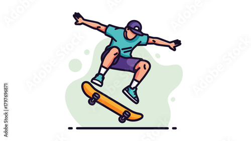 © yudhiecavalera, Obraz premium Dynamic Skateboarder Performing an Ollie Trick in Mid-Air.