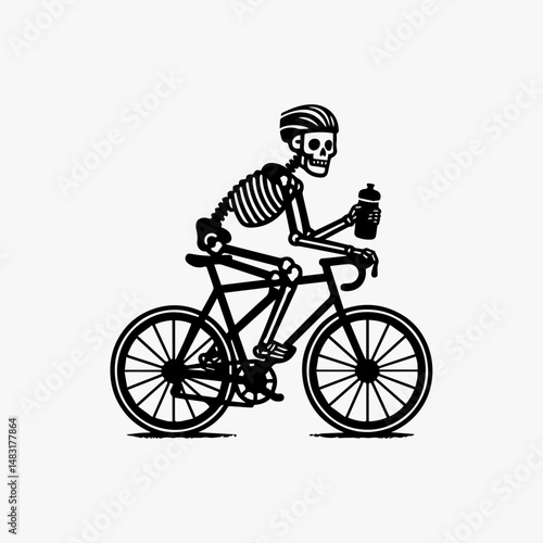 Obraz premium Dynamic skeleton figure energetically pedaling a bicycle with detailed...