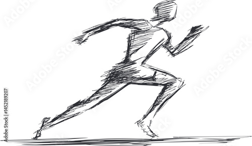 Fototapeta premium Dynamic sketch of a running figure in black and white, shadow suggests...
