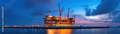 Fototapeta premium Dynamic skyline transformation: Massive construction project featuring cranes...