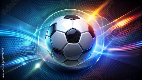 Obraz premium Dynamic Soccer Ball with Neon Light Effects – Futuristic Sports Concept with Energy Motion