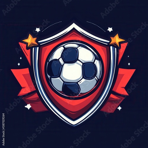 © Serhii, Naklejka premium Dynamic Soccer Emblem. Bold Design Featuring Football and Shield Elements for Competitive Spirit