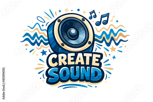 Obraz premium Dynamic speaker with sound waves and musical notes