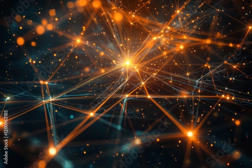 © Abdul, Obraz premium Dynamic starburst patterns with radiant lines and glowing intersections on a dark backdrop