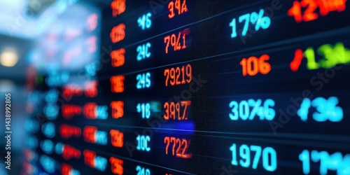 © Phiyarat, Obraz premium Dynamic Stock Market Data Display Financial Numbers and Percentages on LED Screen