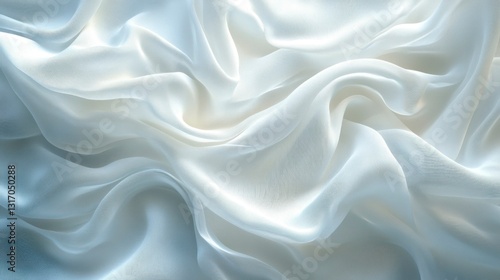 Obraz premium Dynamic topdown view of flowing white tablecloth in motion captured in...