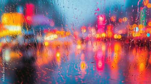 © Siravit, Obraz premium Dynamic Urban Blur of Cityscape at Dusk with Vibrant Lights and Fast Moving Traffic Creating Energy