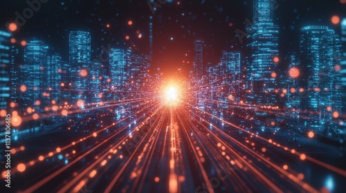 Obraz premium Dynamic urban light trails futuristic cityscape digital art neon environment...