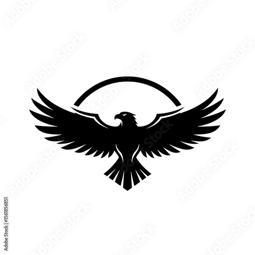 © Oprek, Obraz premium Dynamic vector illustration of an eagle in flight with wide-spread wings, set against a semi-circular background.