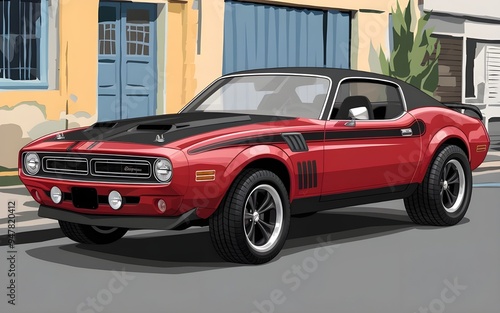 © Lale, Fototapeta premium Dynamic Vector Illustration of Classic and 3D American Muscle Car.