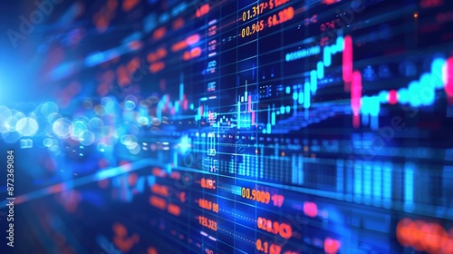 Obraz premium Dynamic Vector of Financial Market Indicators on a Vibrant Blue Background