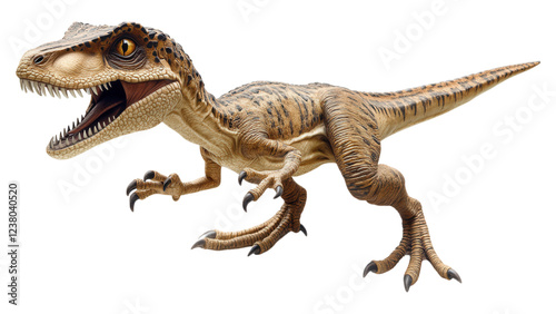 © Suesong, Fototapeta premium Dynamic Velociraptor 3D Model, intricately designed, showcased in an action pose, clear transparent background for versatile use.