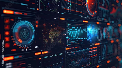 © aito, Obraz premium Dynamic visualization of secure data analytics and threat detection algorithms