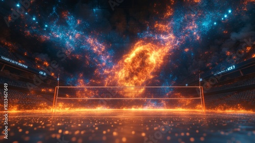 Fototapeta premium Dynamic volleyball serves with comet effects in atmospheric stadium setting
