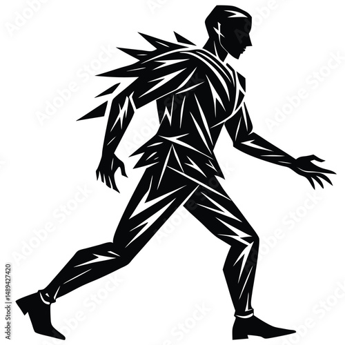 Fototapeta premium Dynamic Walking Silhouette Person in Motion Vector Graphic