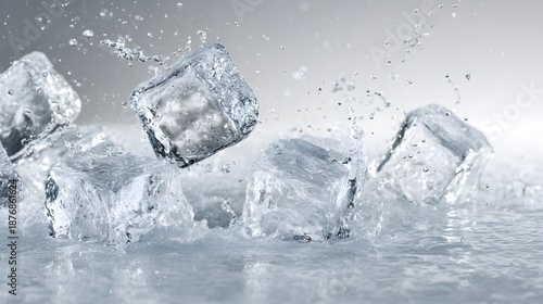Obraz premium Dynamic Water Splash with Ice Cubes on a Light Gradient Background