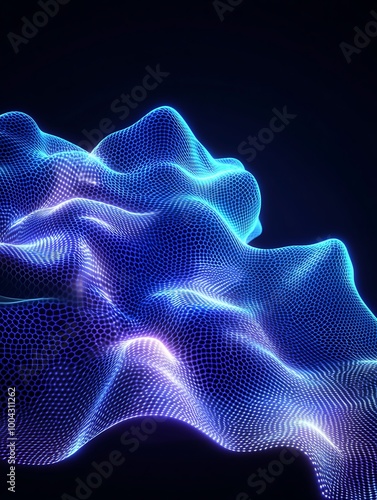 Obraz premium Dynamic wave pattern with vibrant blue and purple lights on a dark...
