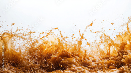 © Dadee, Obraz premium Dynamic waves of muddy water crashing against the shore