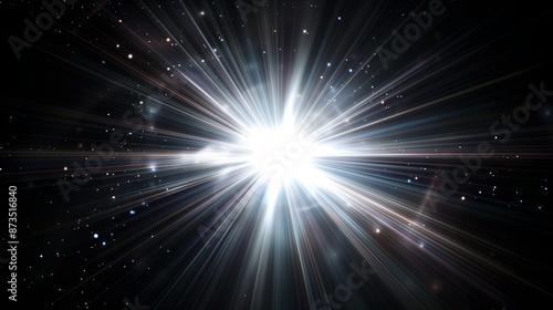 © Muhammad, Naklejka premium Dynamic white Celestial Explosion set. Black Background with Glowing silver Sunburst, Digital Lens Flare, and Color-Adjusted Light Rays