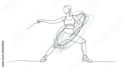 Fototapeta premium Dynamic Woman in Yoga Pose, Continuous Line Art with Abstract Swirls