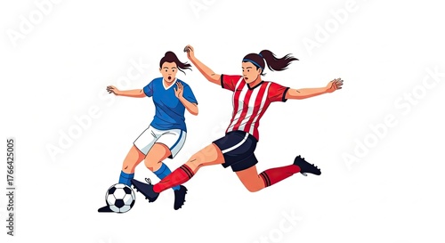 © Budi, Obraz premium Dynamic Womens Soccer Match - Intense Competition and Athleticism.