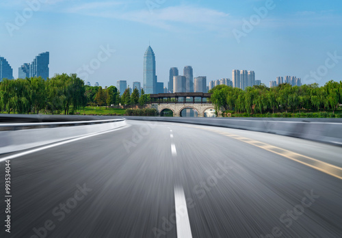 © onlyyouqj, Obraz premium Dynamically blurred highways and the skyline of Hangzhou, China