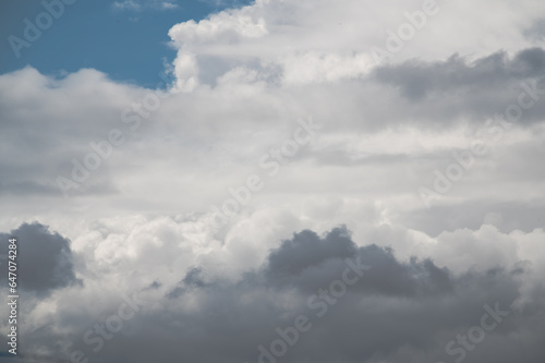 Obraz premium Dynamically changing and diverse layers of white clouds over the city. The clouds move quickly from left to right.
