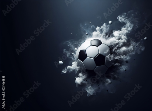 © sweasy, Obraz premium Dynamischer Fußball, in Bewegung auf schwarzem Hintergrund