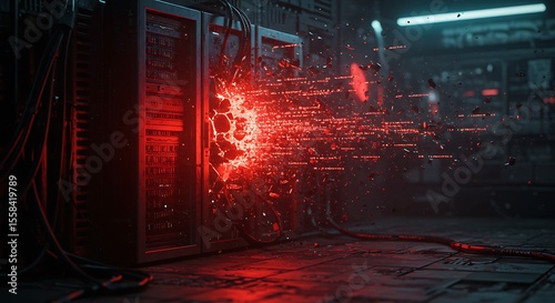 © Ilham, Obraz premium Dystopian Cyberpunk Data Breach and System Meltdown. (AI Generated)