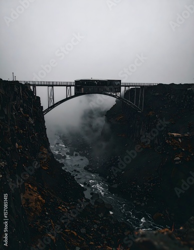 © Tanakorn, Fototapeta premium Dystopian Sci-Fi Towers and Structures – Monolithic Megastructures in Foggy Cinematic Atmosphere