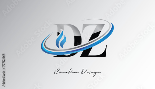 Obraz premium DZ Flame Swoosh Monogram Logo – Energy, Tech & Futuristic Branding