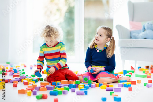 © famveldman, Fototapeta premium Dzieci bawią się klockami. Zabawki dla dzieci.