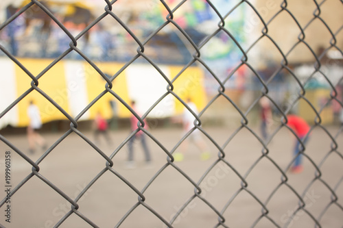 © Artem Kniaz, Fototapeta premium dzieci bawią się za płotem