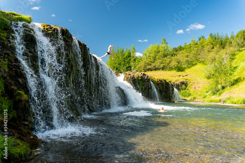 © Mateusz, Fototapeta premium Dzieci skaczą z wodospadu i dobrze się bawią