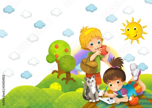 Obraz premium Dziecko w parku - rysunek - ilustracja