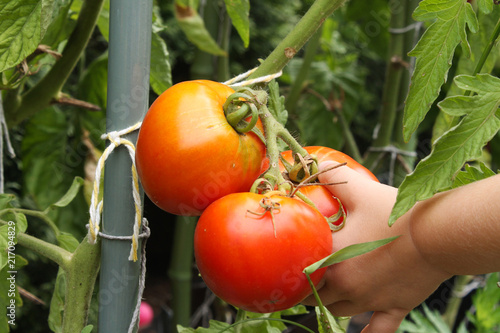 Fototapeta premium dziecko zrywające soczyste pomidory