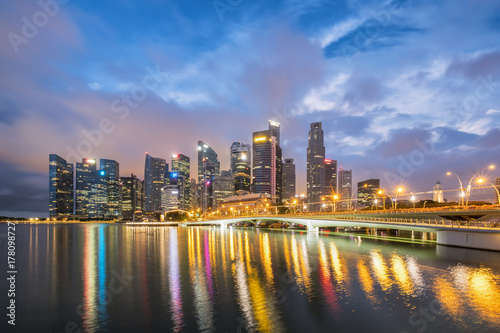 © Atip R, Naklejka premium Dzielnica finansowa w Singapurze, miejsce podróży o zmierzchu