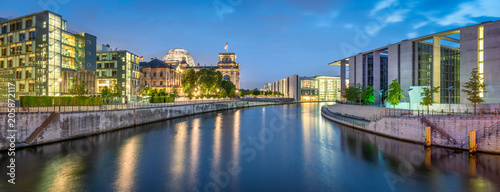 Obraz premium Dzielnica rządowa w Berlinie z Reichstagiem, Bundestagiem, Paul-Löbe-Haus i...