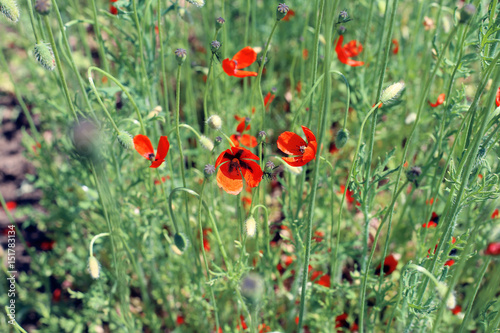 Obraz premium Dzika natura. Czerwone maki polne. tło