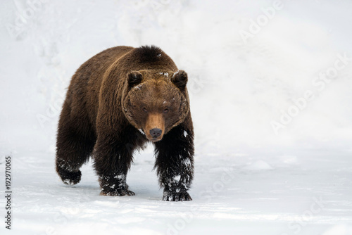 © byrdyak, Fototapeta premium Dziki niedźwiedź brunatny w zimowym lesie