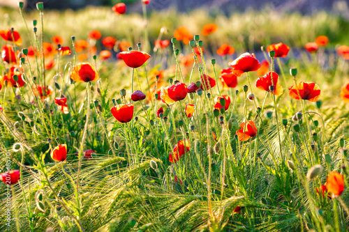 Fototapeta premium Dzikie czerwone lato maki w polu pszenicy