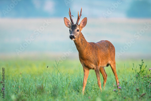 © Soru Epotok, Fototapeta premium Dzikie sarny z dużymi rogami w polu