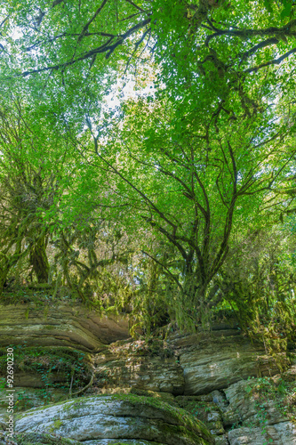 © idea_studio, Obraz premium Dzikie skały z omszałymi drzewami
