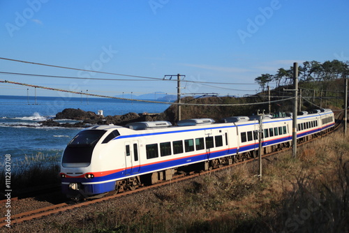 © Fujibusa, Obraz premium 絶景の信越本線を駆け抜けるE653系の特急しらゆき号_2024/12/2撮影