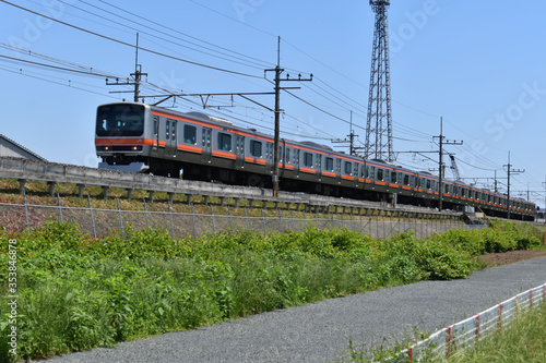 Obraz premium 電車、通勤電車、武蔵野線、オレンジライン、E231系