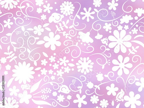 © Sachi, Obraz premium 花と鳥のシームレスパターン E-2