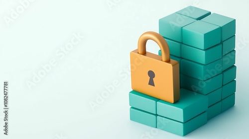 Obraz premium E-commerce Platform Security. A digital illustration of a padlock placed on teal blocks, symbolizing security and protection of data or valuable assets.