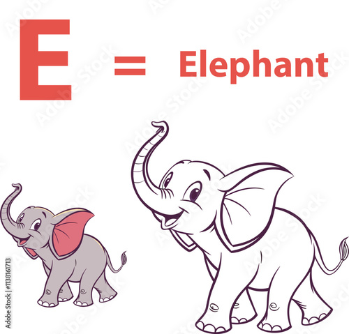 Naklejka premium E for Elephant Coloring Page – Big Fun for Kids