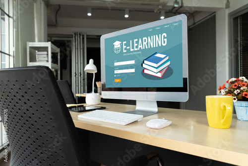 Naklejka premium E-learning website with modish sofware for student to study online on the internet network